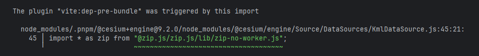 window.Cesium = Cesium- (未遇到此错误可忽略)由于可能是pnpm包管理的问题,使用组件可能报错cesium依赖库找不到zip.js,如果出现这个问题需要手动安装@zip.js/zip.js解决找不到zip.js库的问题。
